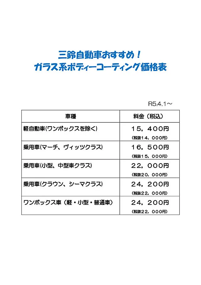 ガラス系ボディコーティングのご用命は(有)三鈴自動車までどうぞ!